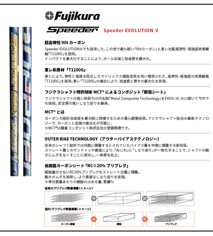 また、東レ(株)製の高強度炭素繊維「T1100G」も 使用し、フジクラらしい強烈な弾きを表現しました。
